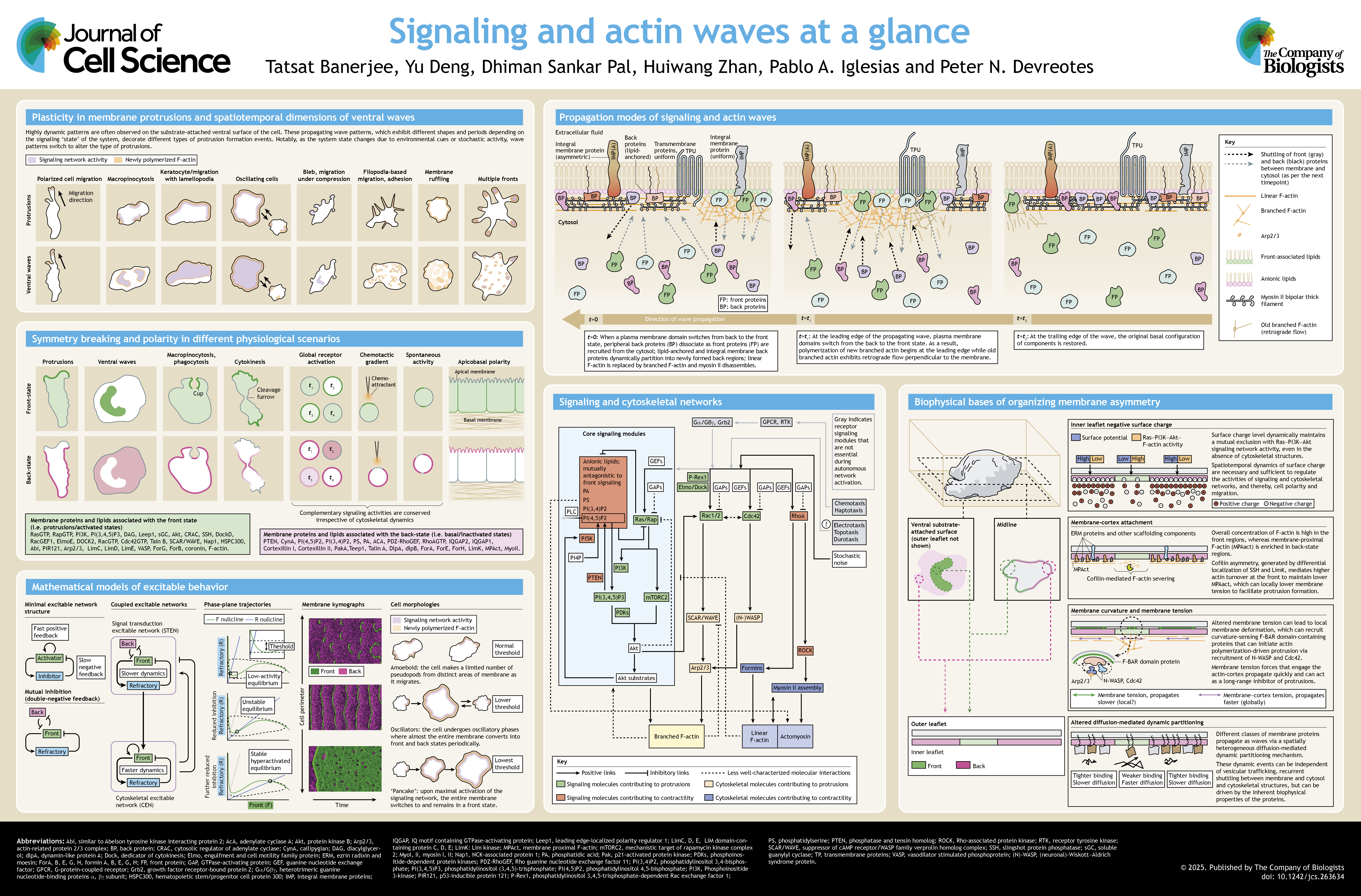Tatsat Banerjee, Yu Deng, Dhiman Sankar Pal, Huiwang Zhan, Pablo A Iglesias, Peter N Devreotes, “Signaling and Actin Waves at a glance”, Journal of Cell Science, 2025, 138, jcs263634 (invited review). DOI: 10.1242/jcs.263634. [Download: Poster Image File, Article PDF]